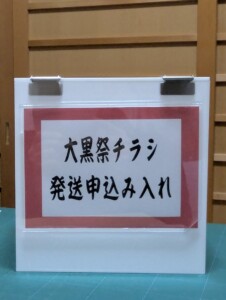 ご希望の方は、大黒祭当日、申込み書に必要事項をご記入の上、下記写真の箱にお入れ下さい。